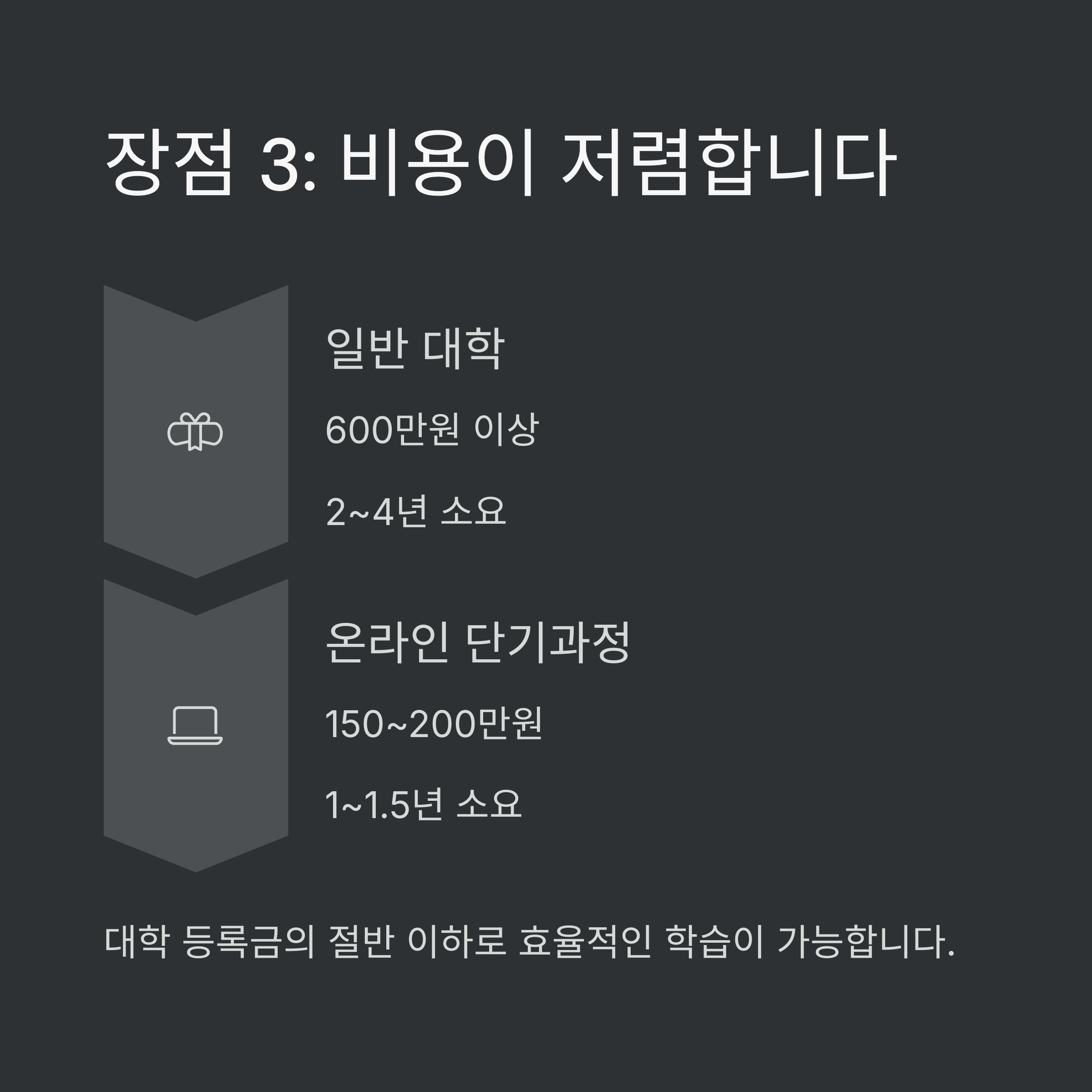 비용이 절반 이하로 저렴합니다. 장기 과정보다