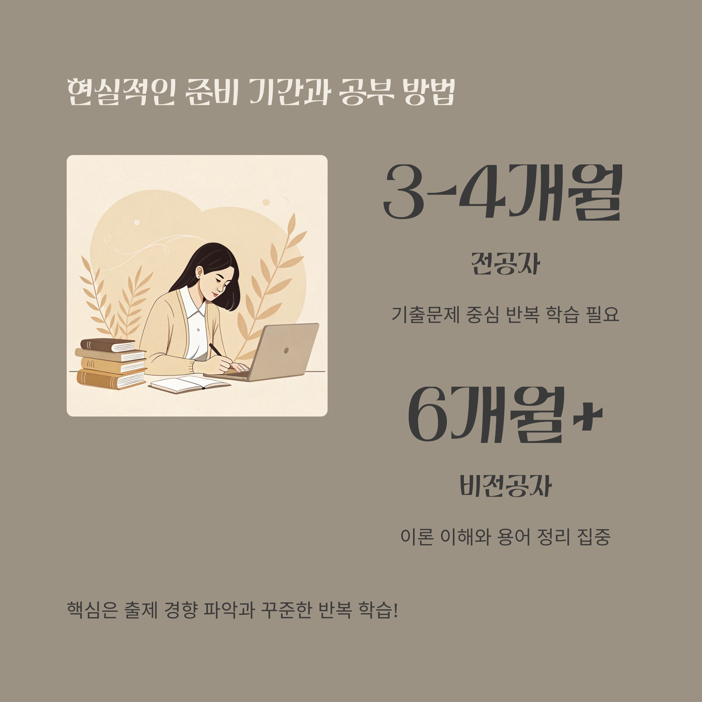 | 전공자 | 3~4개월 | 기출 문제 중심 반복 학습 |