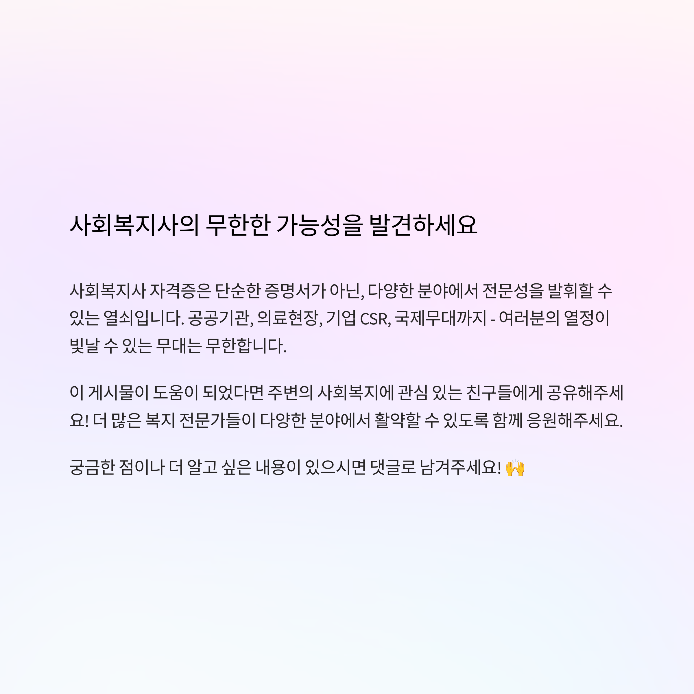 | 사회복지사의 전문성은 왜 중요할까요? (1) | 2025.07.18 |