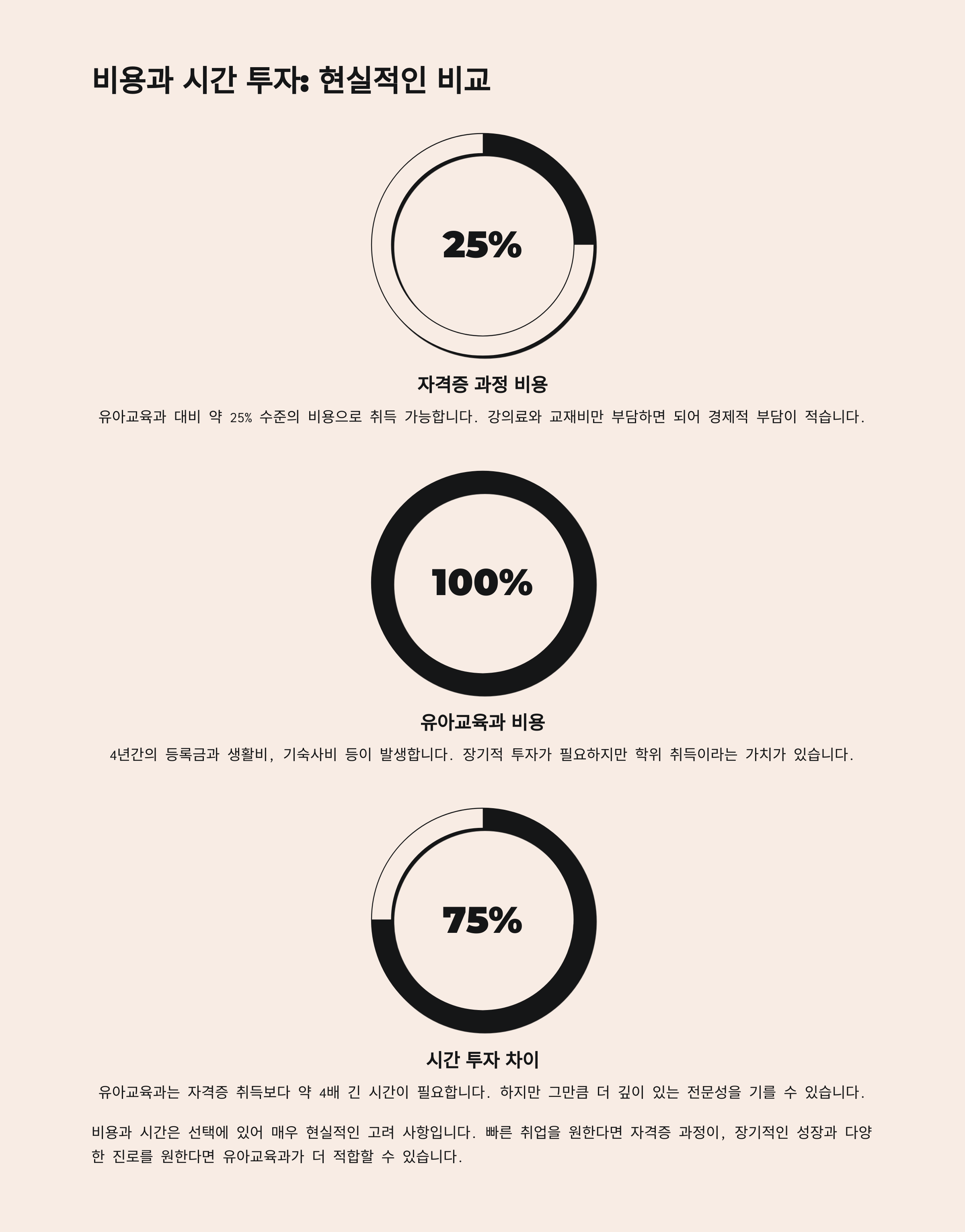 이 글에서는 보육교사 자격증과 유아교육과 전공 과정의 주요 차이점을 살펴봅니다. 취득 방법과 교육 기간, 학습 내용, 비용과 진로 전망 등을 비교하여 자신에게 맞는 길을 선택하는 데 도움을 드립니다.