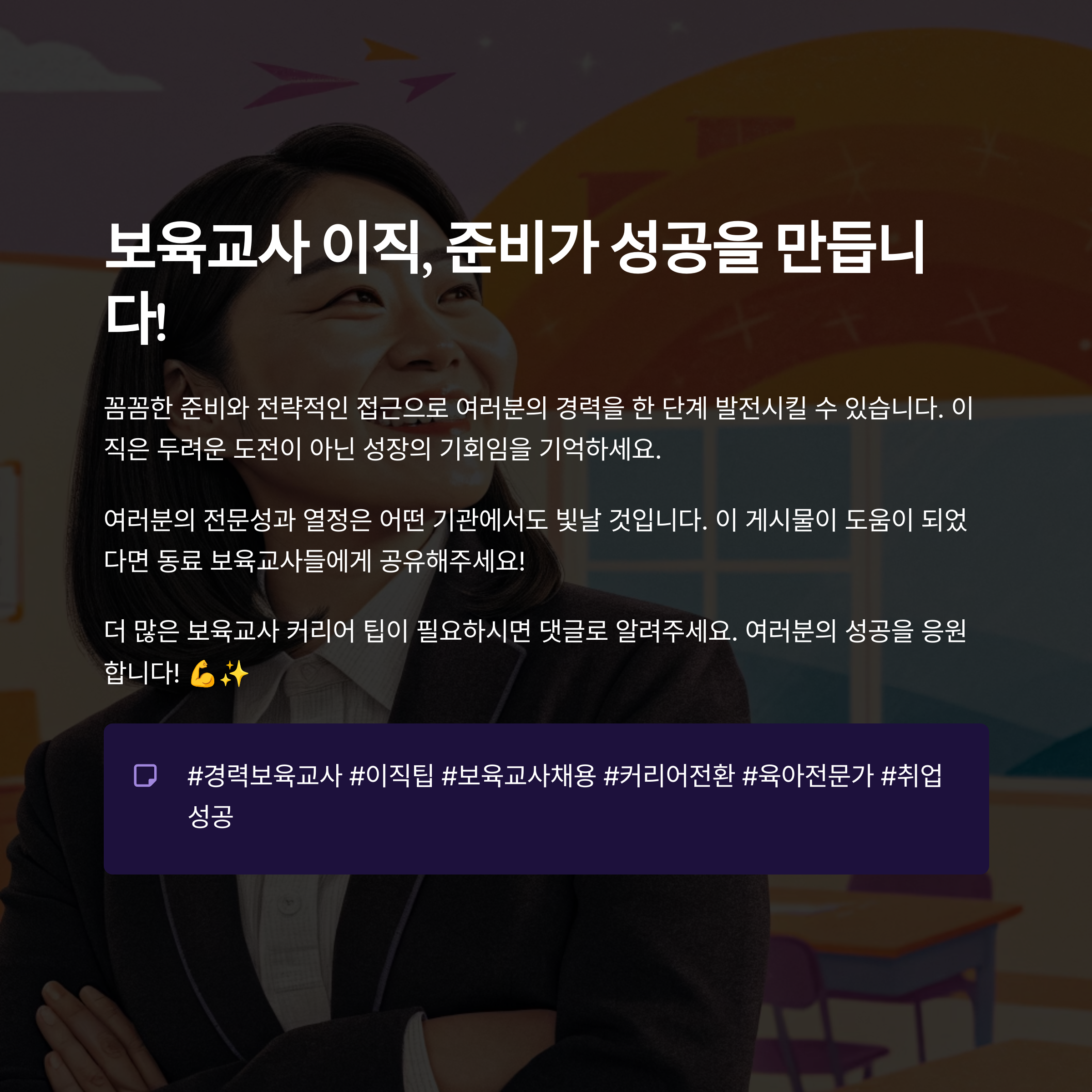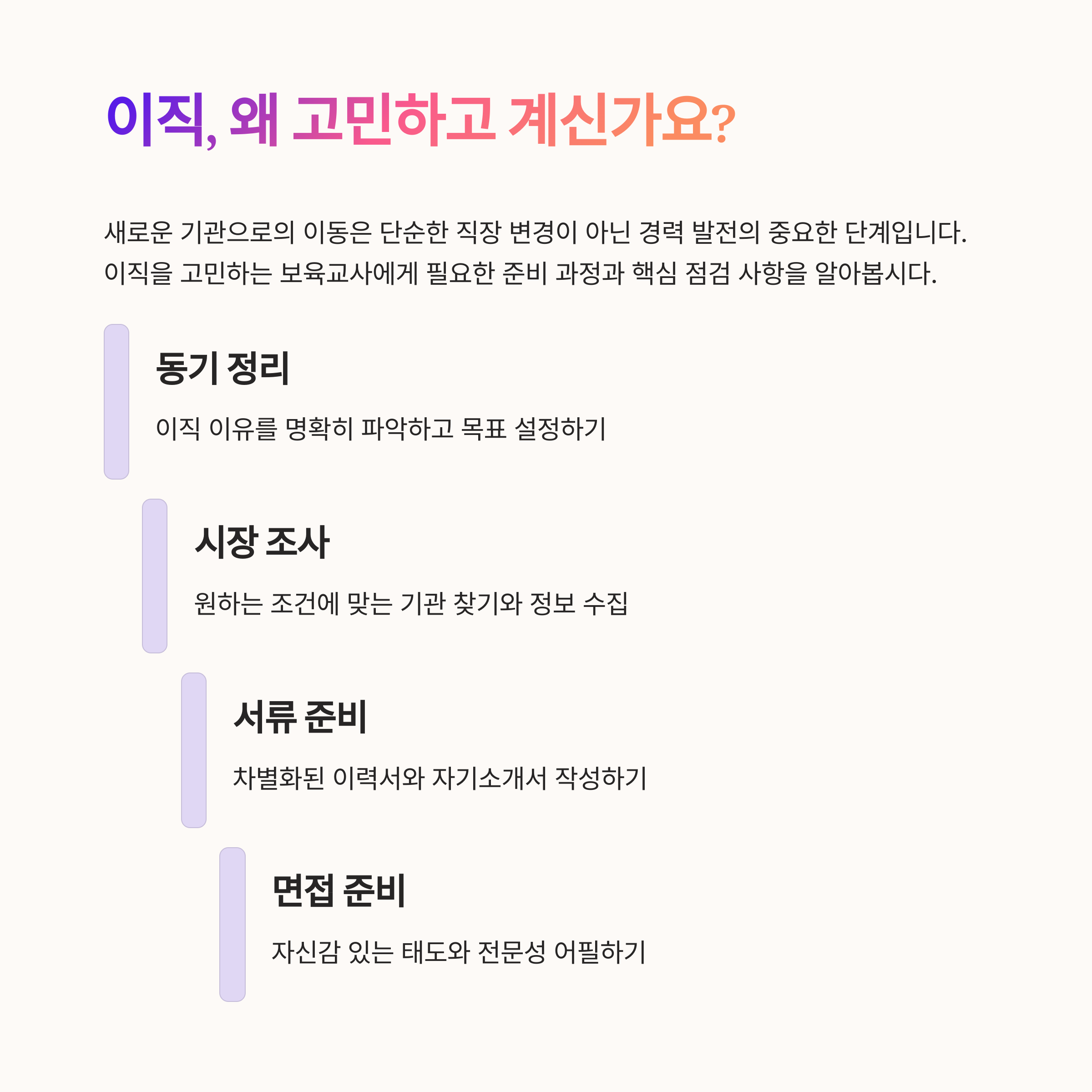 보육교사로서 쌓은 경험을 바탕으로 새로운 기관으로 이직을 고민할 때