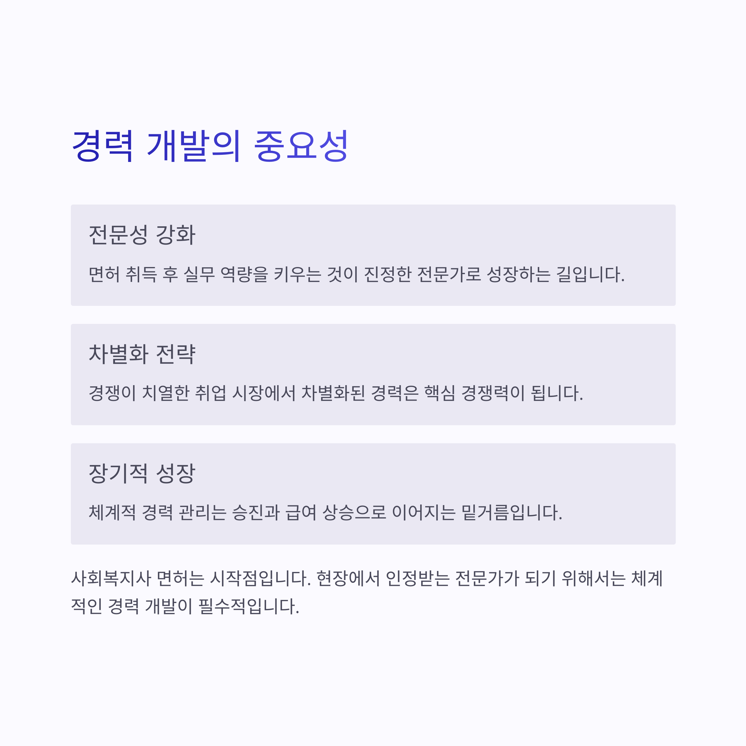 사회복지사 면허를 취득하고 나면 다양한 현장 경험과 전문 역량을