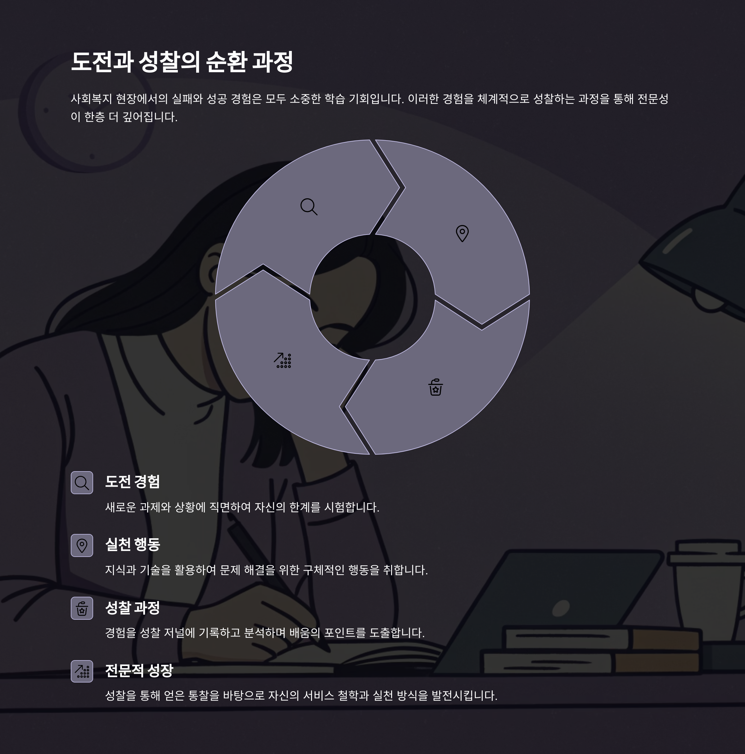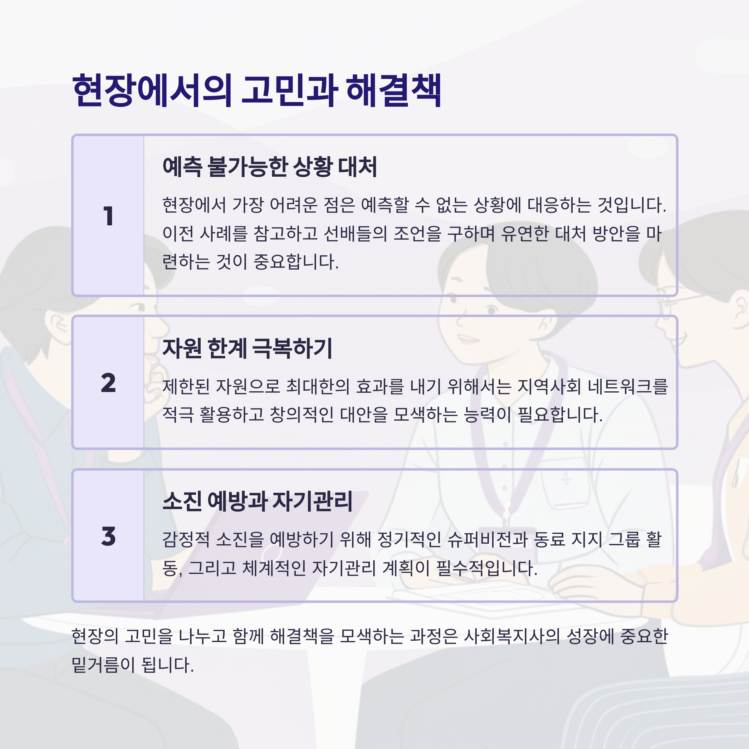 사회복지사로서 현장 경험은 이론과 실제를 연결하는 핵심 단계입니다.
