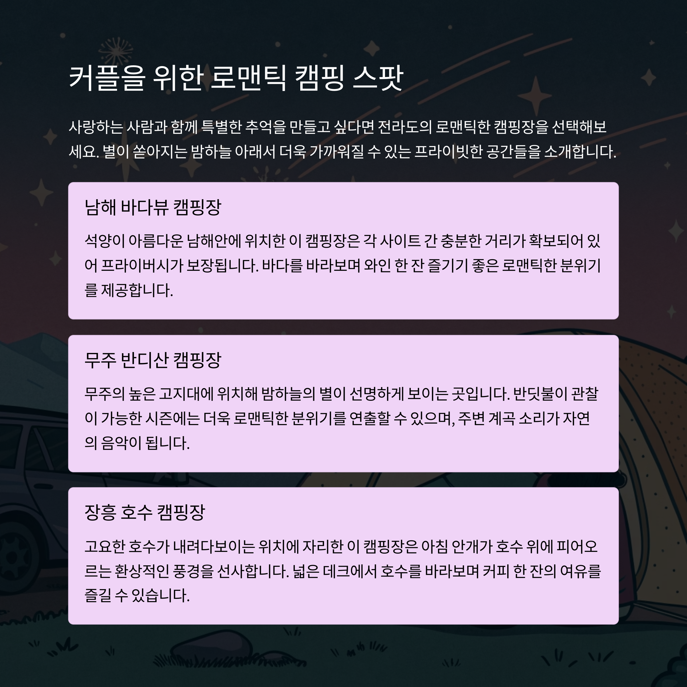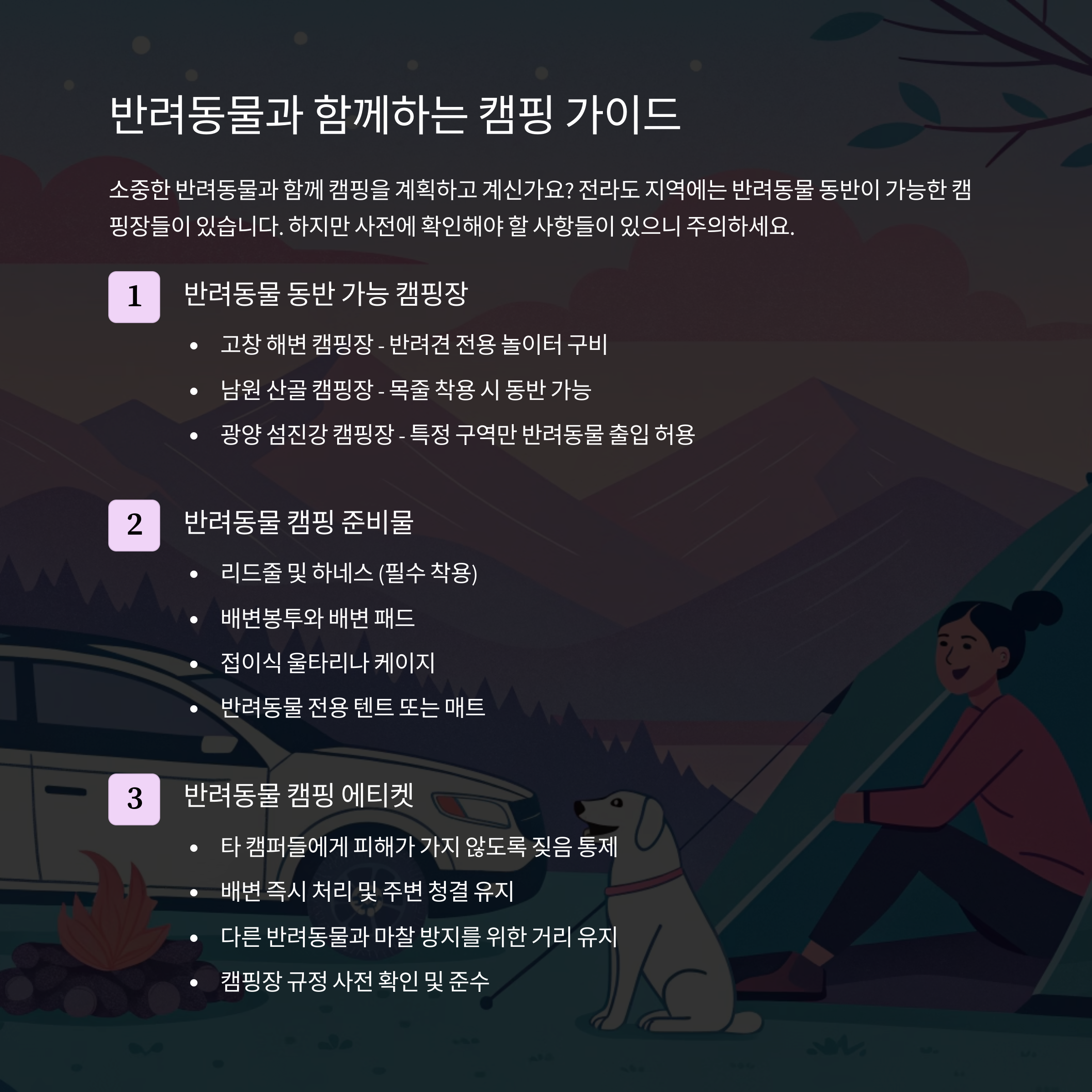 캠핑장을 선택하는 것이 좋습니다. 전라도 지역에는 반려견