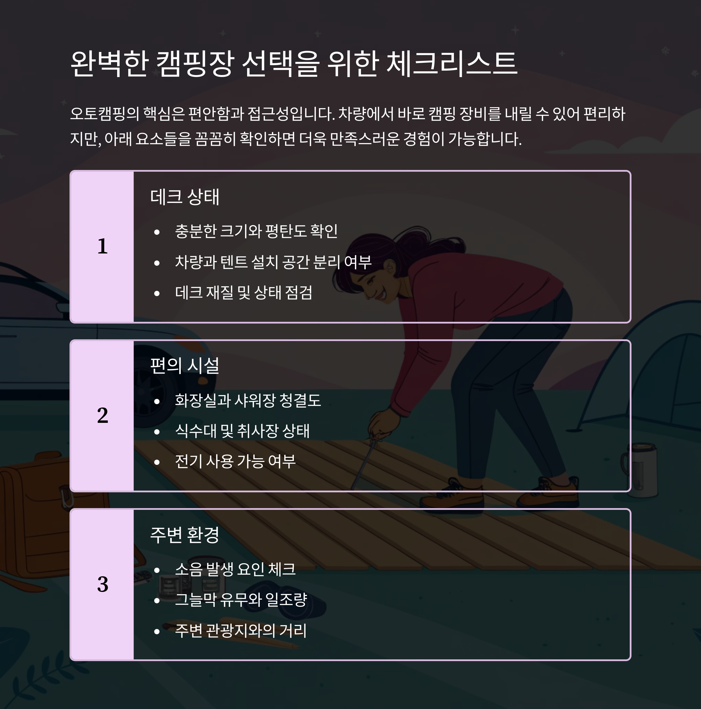 캠핑장 선택 시에는 주변 경관과 부대시설, 접근성,