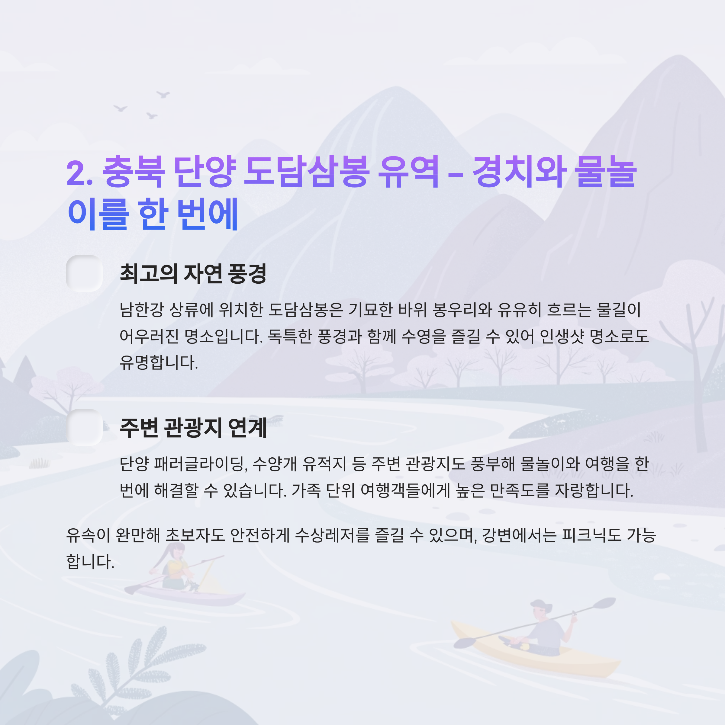 2. 충북 단양 도담삼봉 유역 – 경치와 물놀이를 한 번에