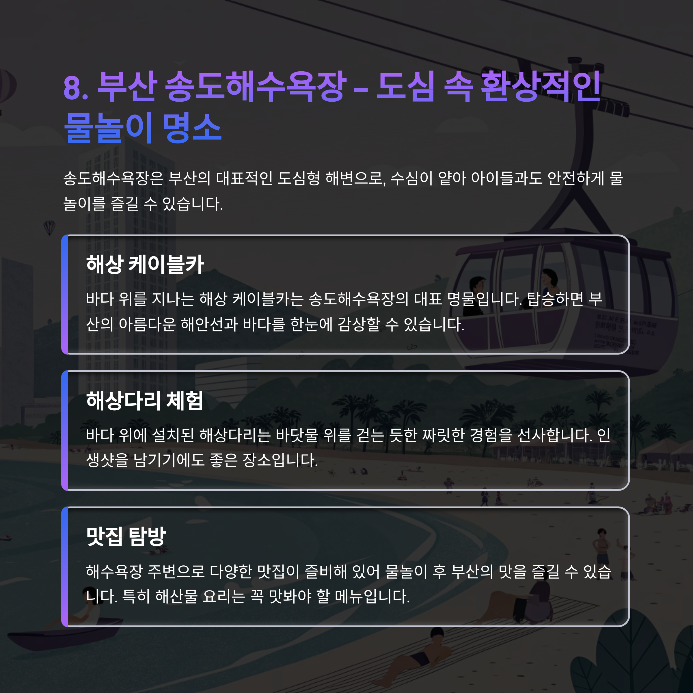 8. 부산 송도해수욕장 – 도심 속 환상적인 물놀이 명소