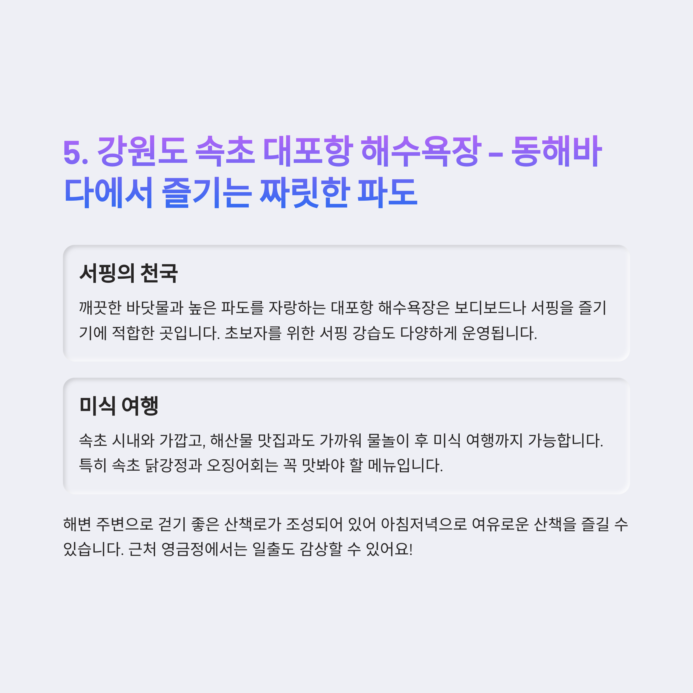 5. 강원도 속초 대포항 해수욕장 – 동해바다에서 즐기는 짜릿한 파도