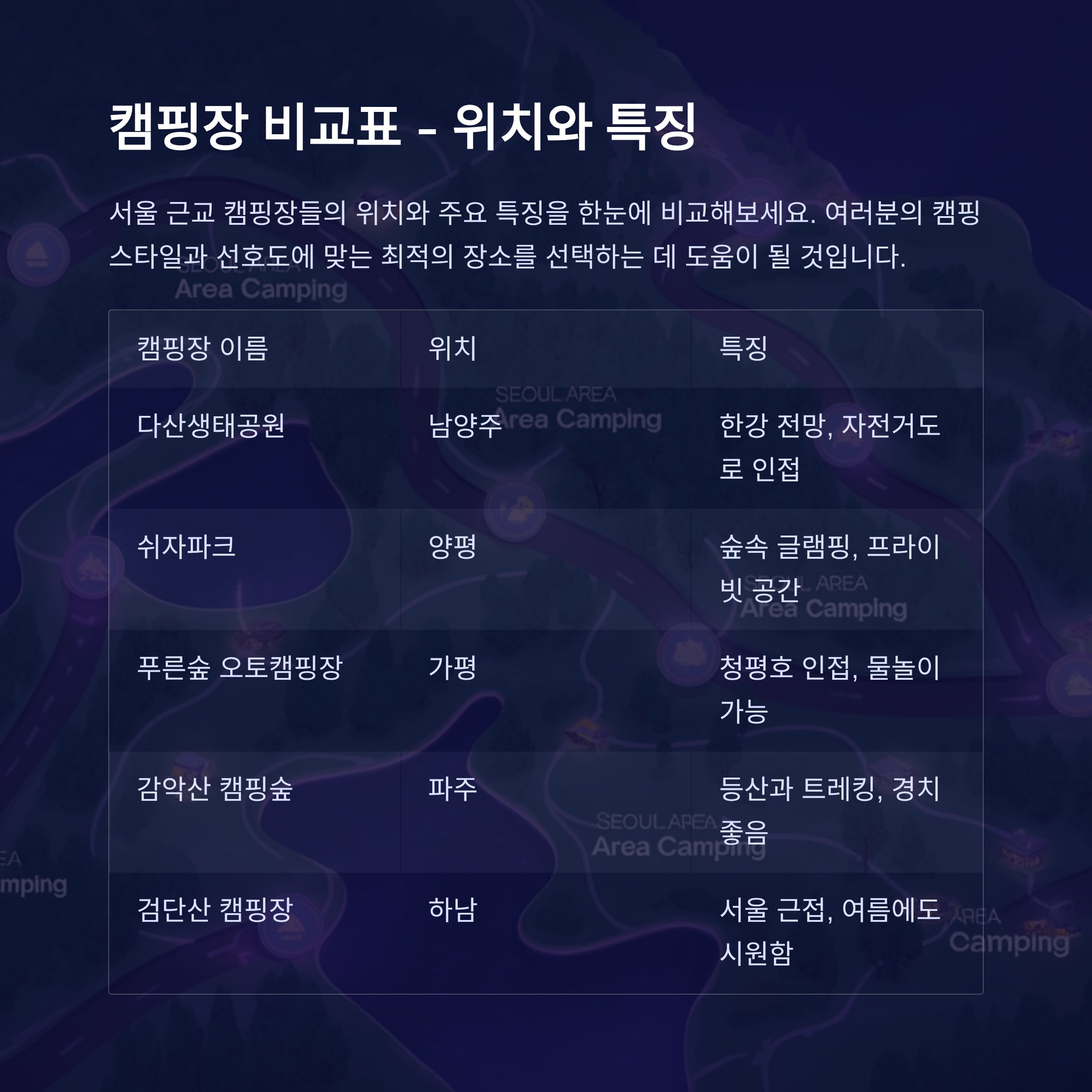 캠핑장 이름 위치 특징