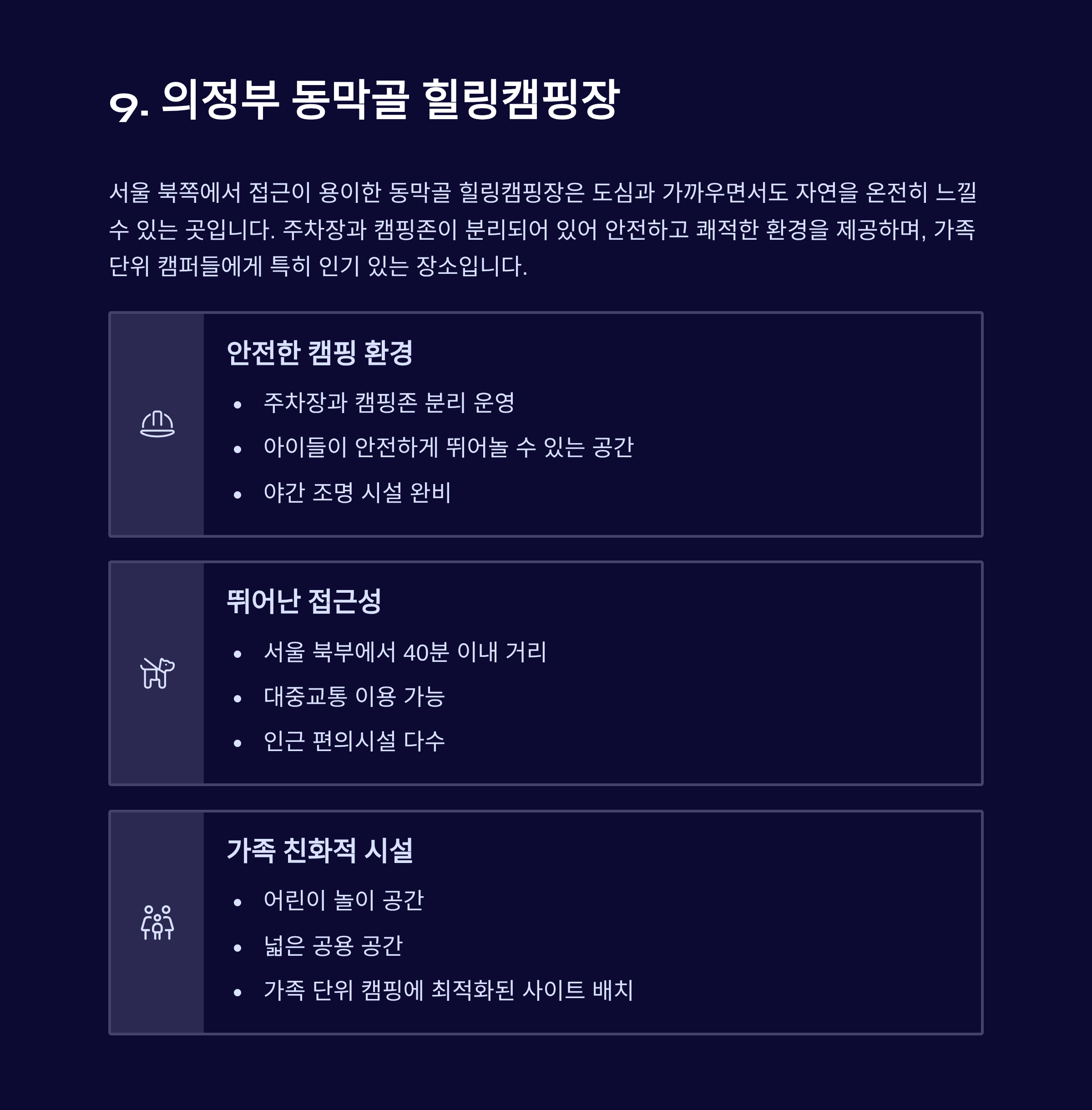 9. 의정부 동막골 힐링캠핑장