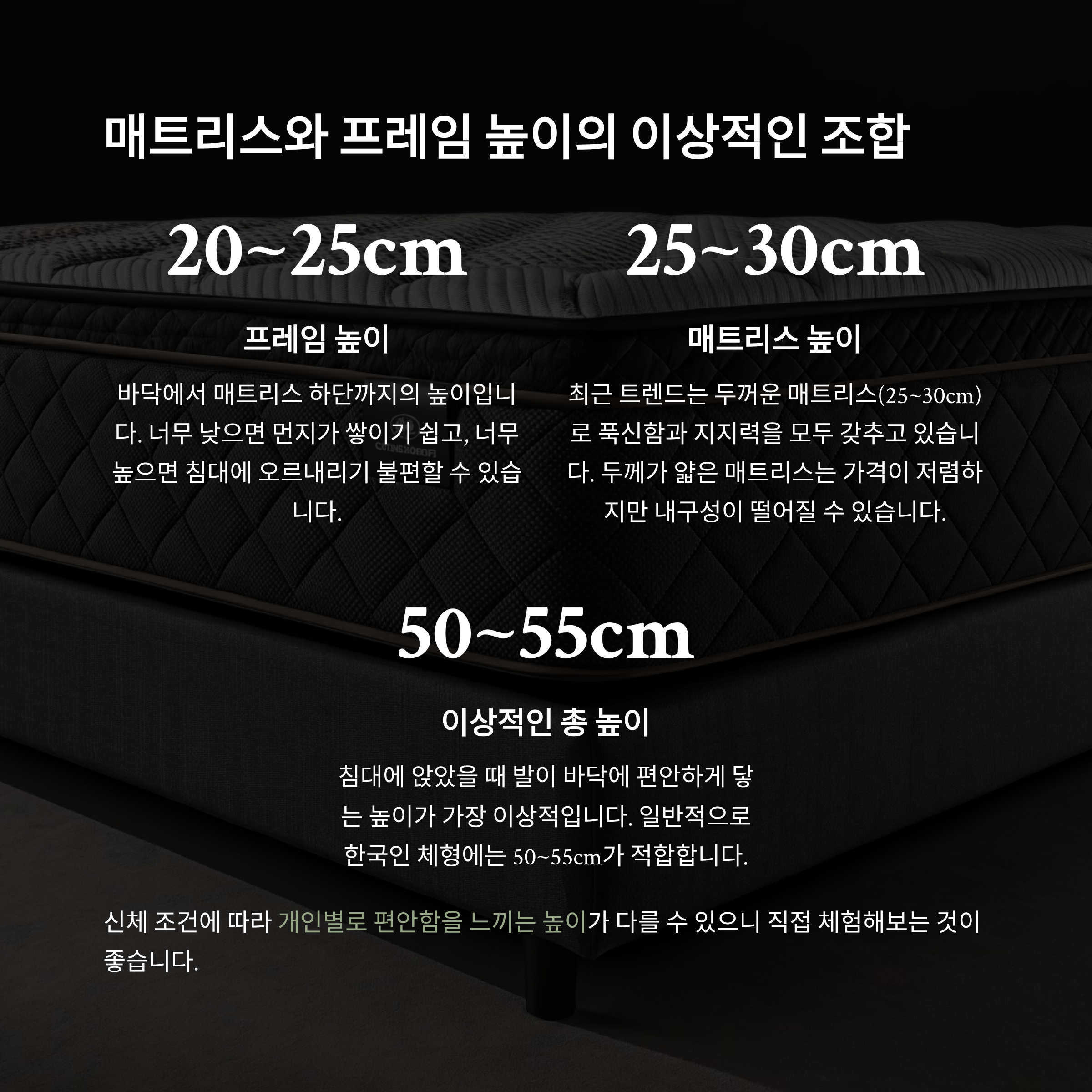 매트리스 높이와 프레임 높이의 조합도 체크하세요