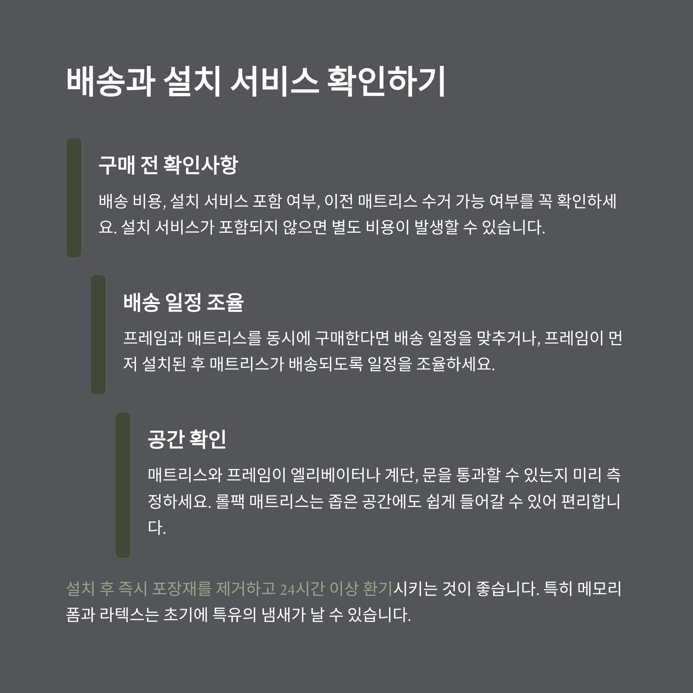 무겁고 부피가 큰 매트리스는 설치 서비스 여부가 중요합니다.