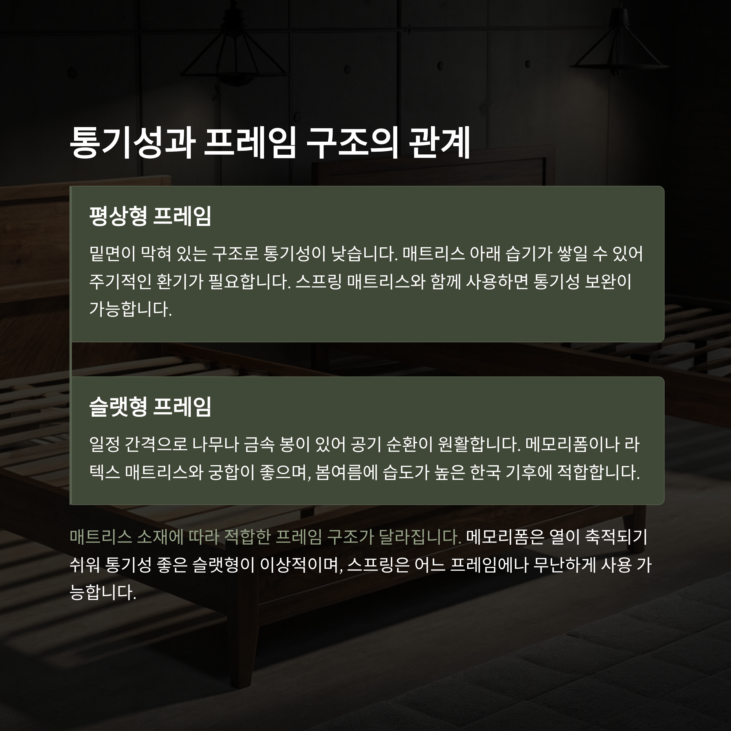 일반적인 평상형 프레임은 통기성이 낮아 습기 차단 기능이