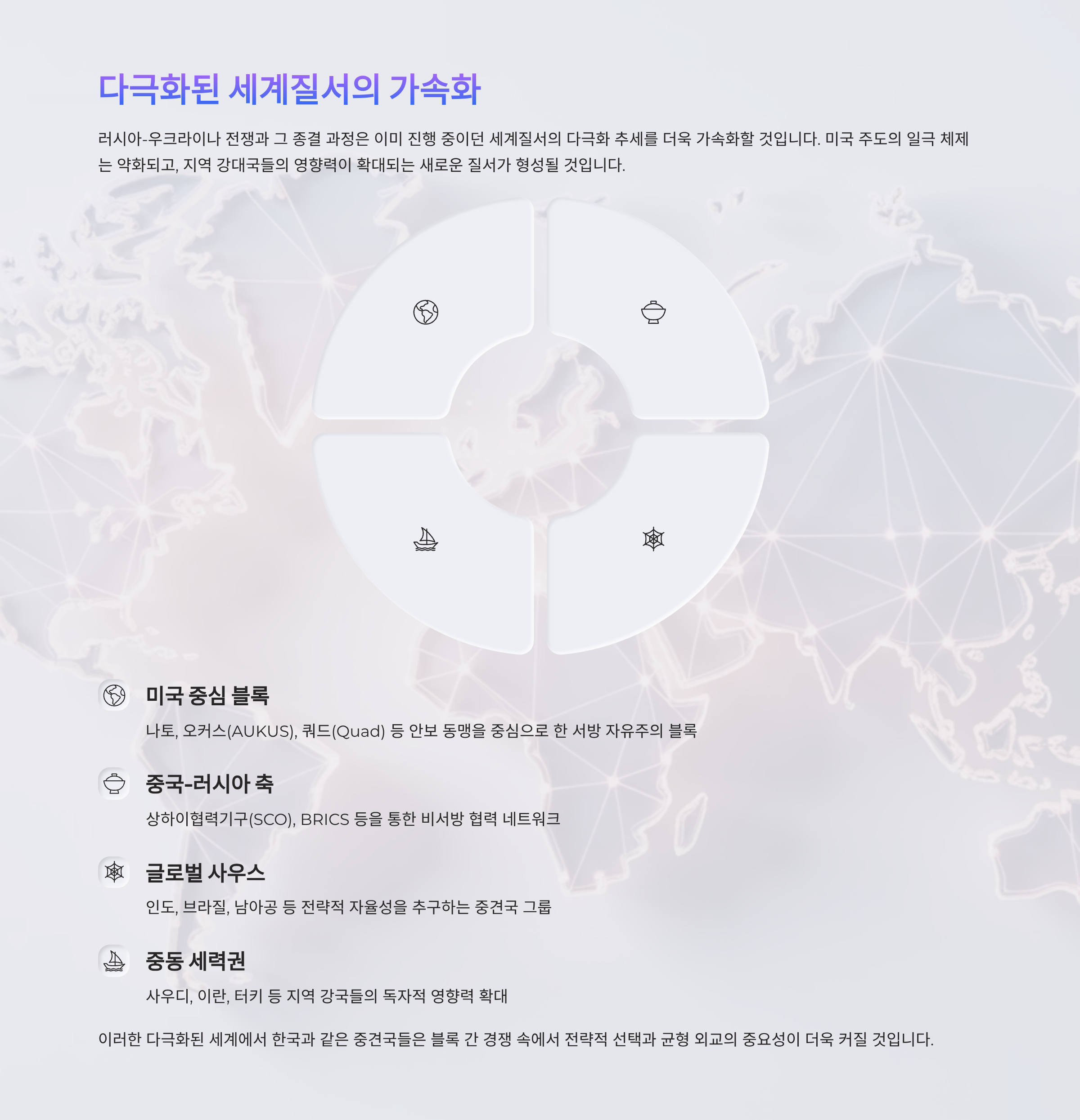 각국의 외교 전략에도 결정적 영향을 줄 가능성이 큽니다.