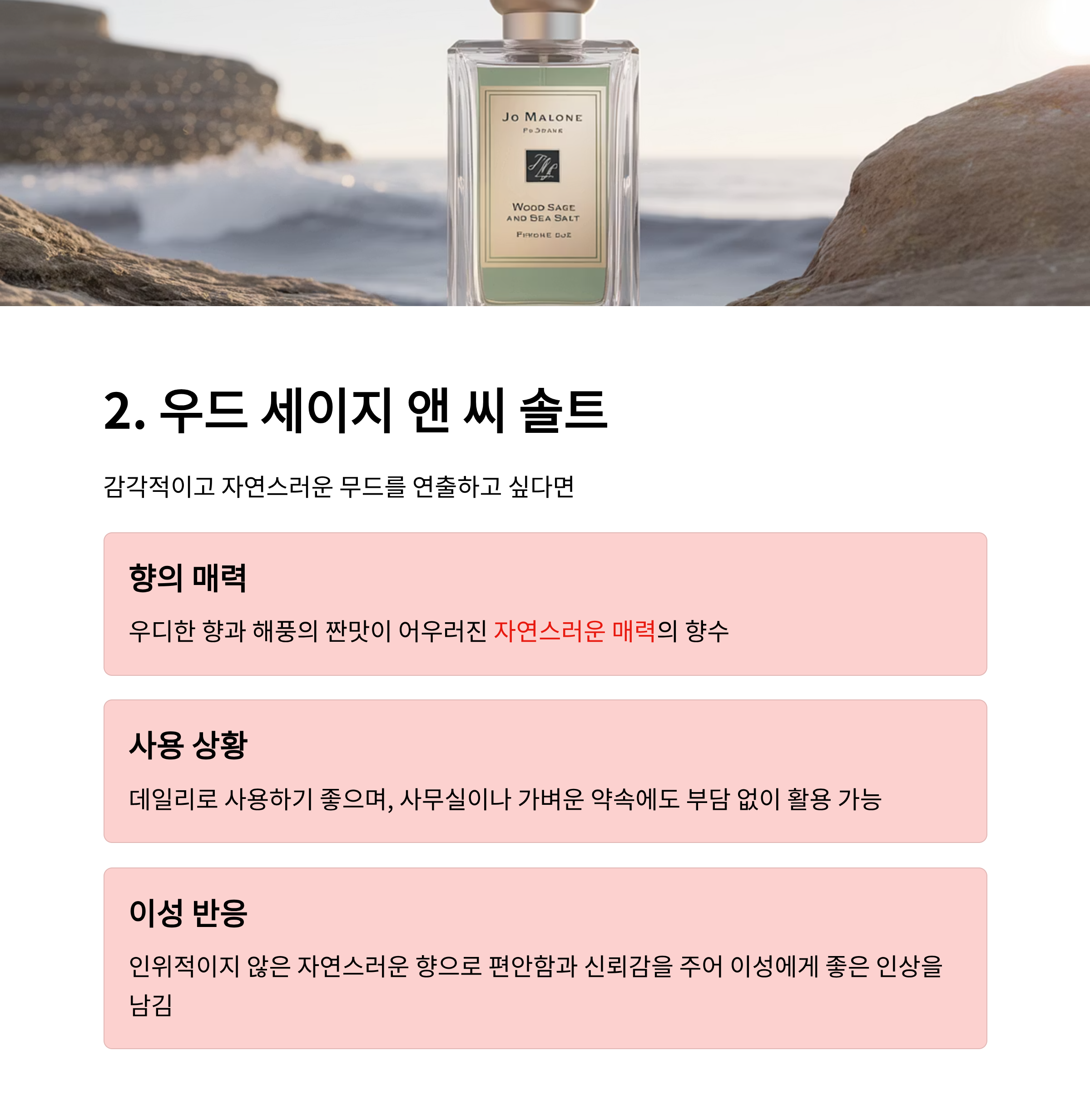 2. 조말론 우드 세이지 앤 씨 솔트 – 감각적이고 자연스러운 무드