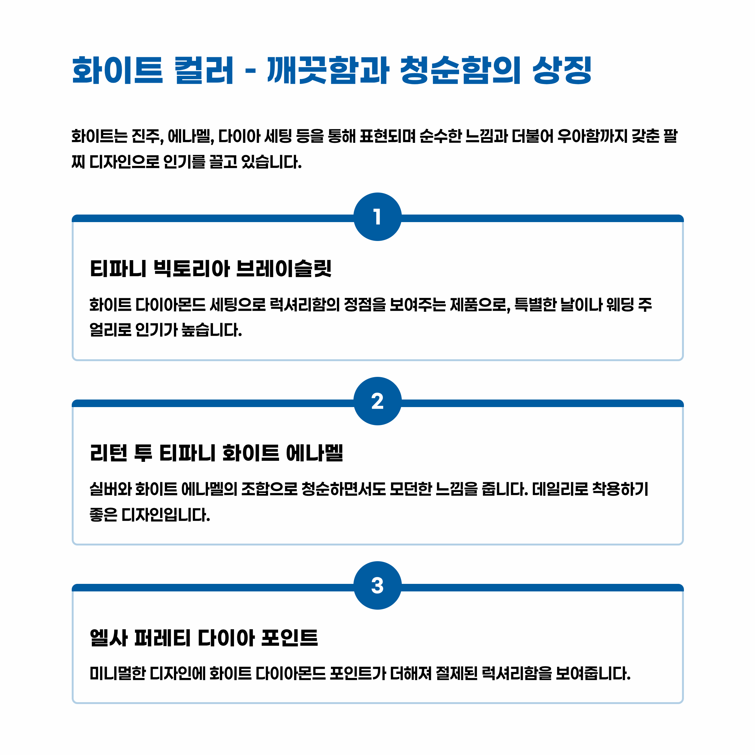 | 화이트 | 청순, 우아함 | 빅토리아 다이아 세팅 |