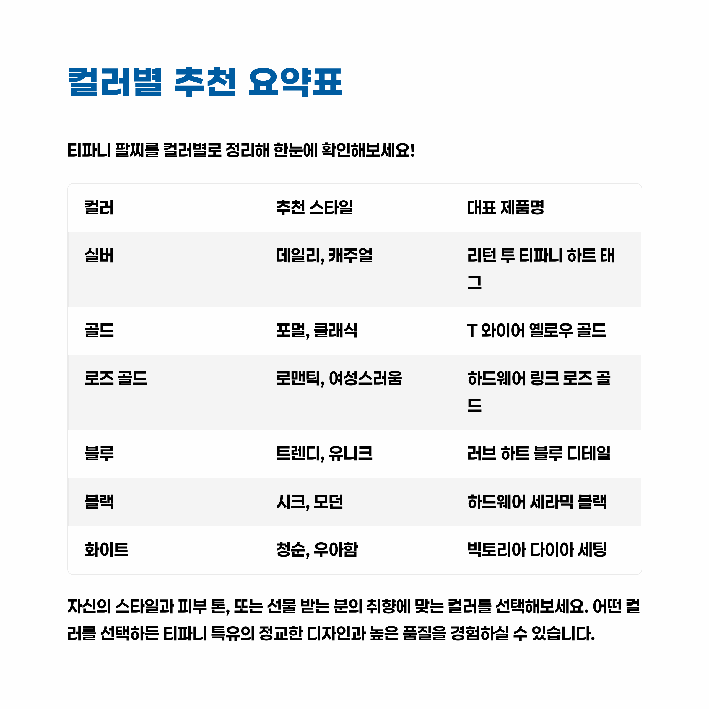 어떤 컬러가 나에게 어울릴까? 티파니 팔찌 컬러별 추천 가이드