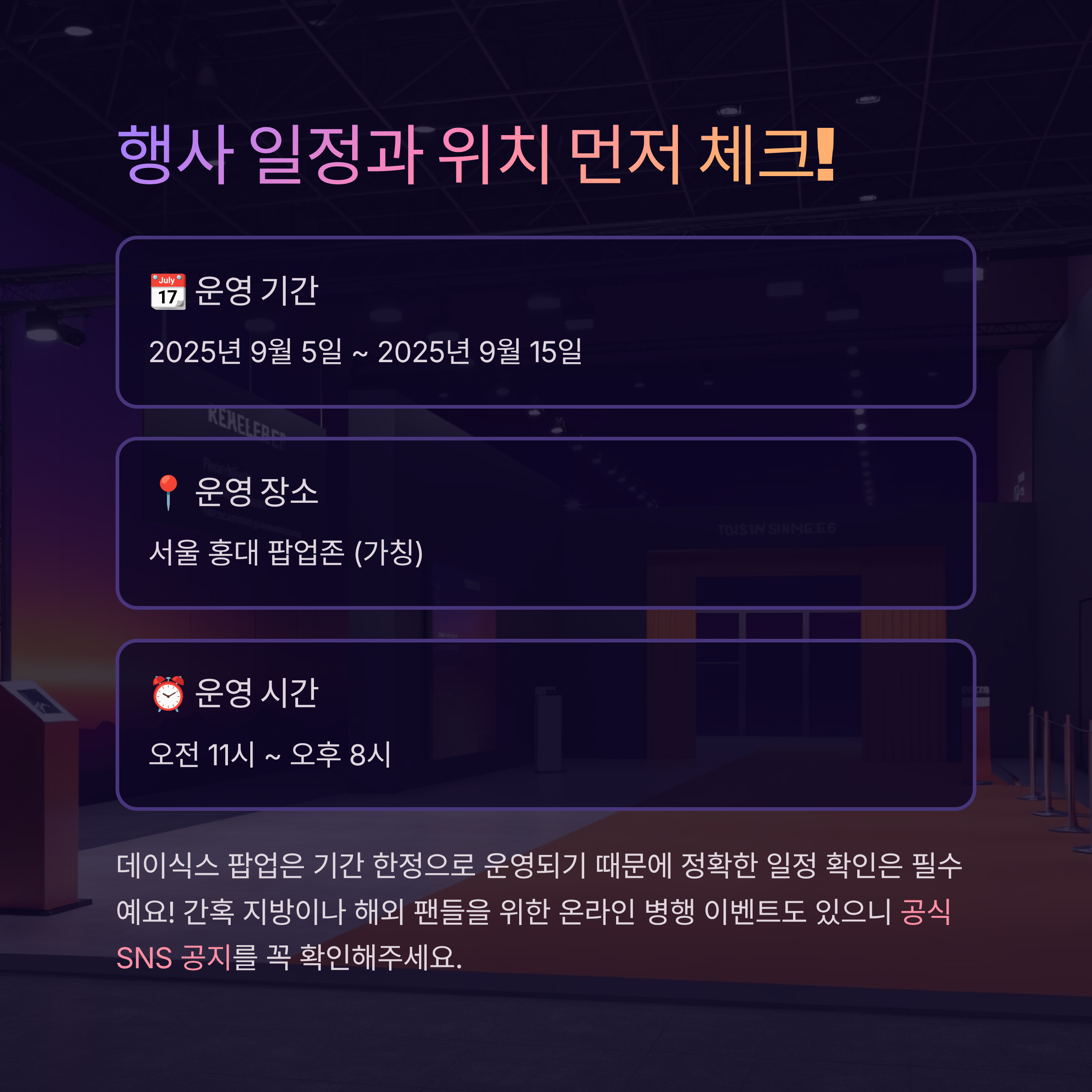 | 운영 장소 | 서울 홍대 팝업존 (가칭) |